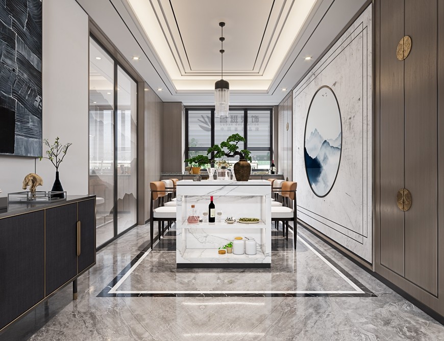 ▲華清學(xué)府城複式260平米新(xīn)中(zhōng)式風格李星設計師主筆(bǐ)——餐廳設計效果圖