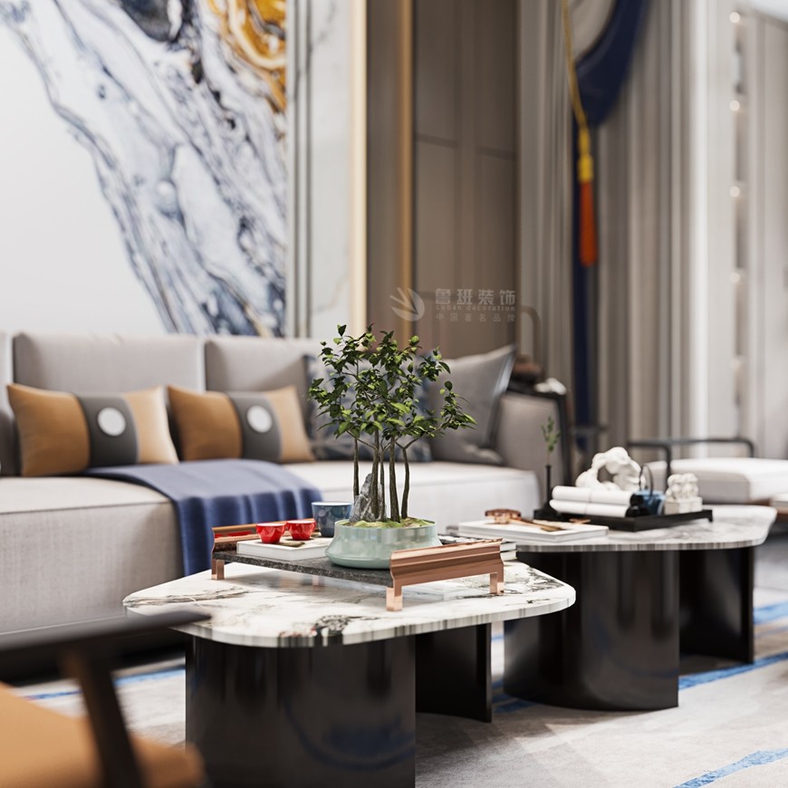 ▲華清學(xué)府城複式260平米新(xīn)中(zhōng)式風格李星設計師主筆(bǐ)——沙發區(qū)域設計效果圖
