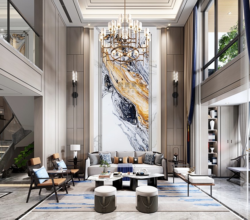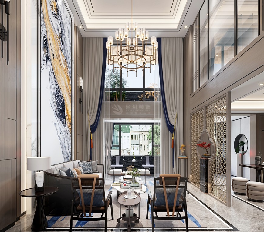 ▲華清學(xué)府城複式260平米新(xīn)中(zhōng)式風格李星設計師主筆(bǐ)——客廳區(qū)域設計效果圖