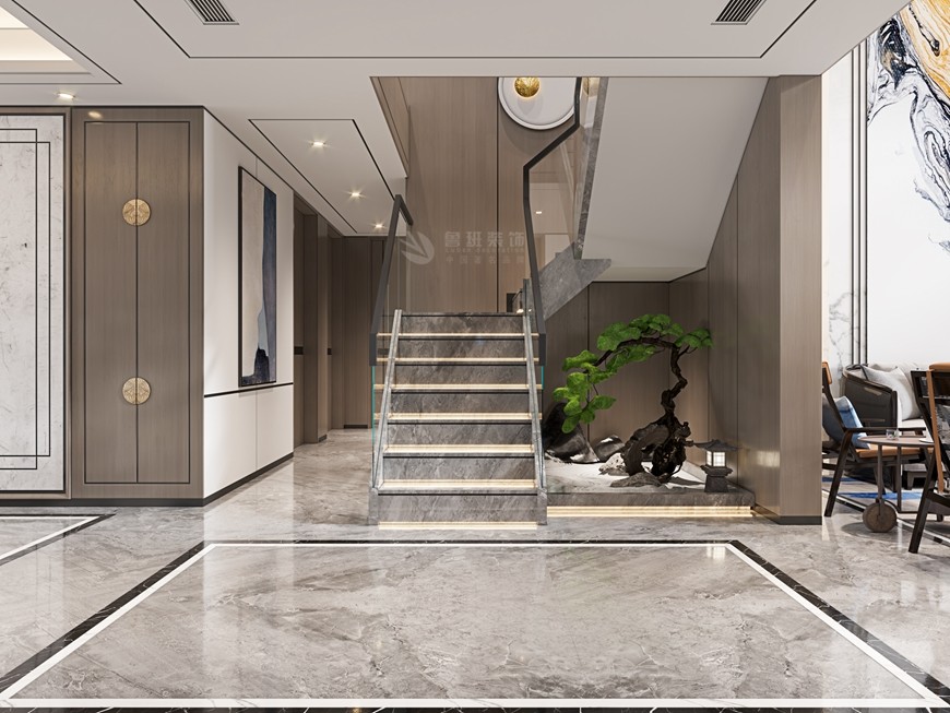 ▲華清學(xué)府城複式260平米新(xīn)中(zhōng)式風格李星設計師主筆(bǐ)——樓梯間設計效果圖