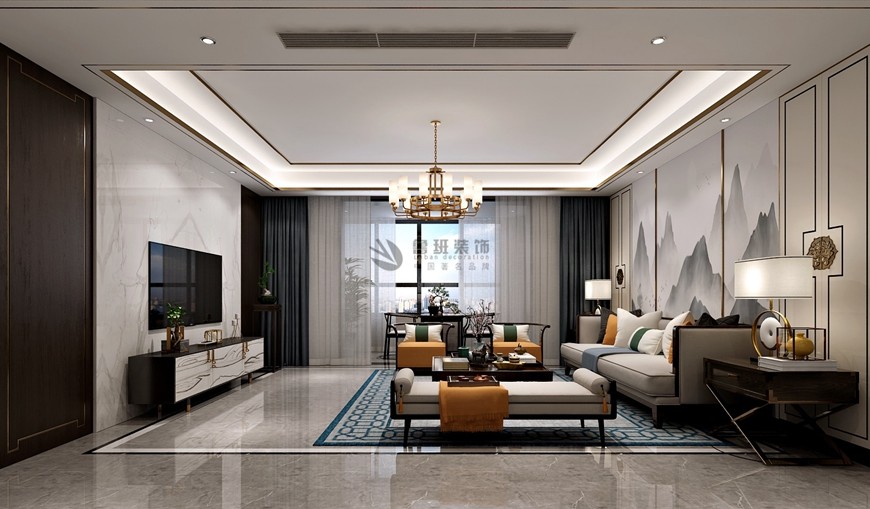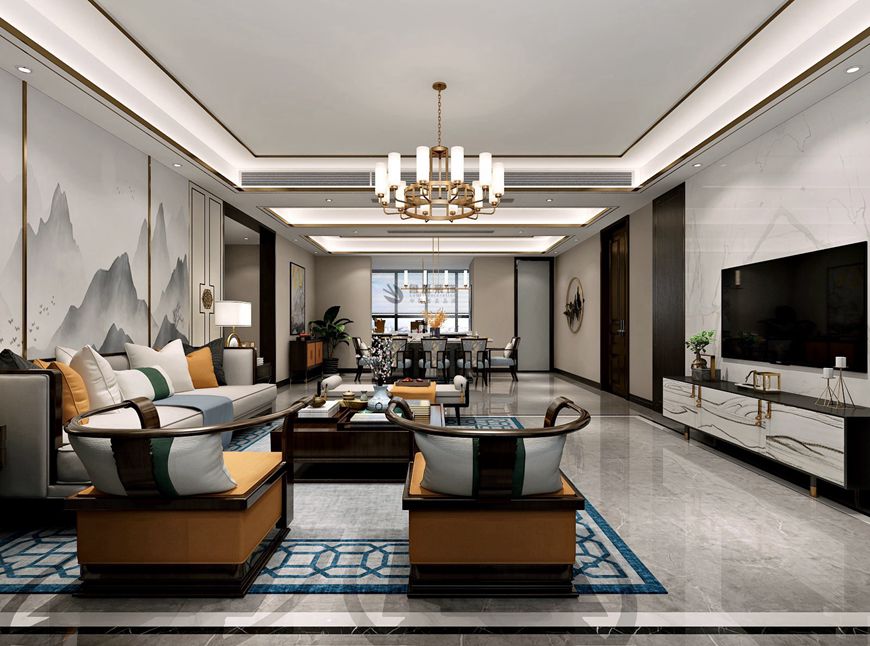 東方米蘭國(guó)際城220平米新(xīn)中(zhōng)式緻敬東方古韻孫文(wén)钊主筆(bǐ)設計——客廳設計效果圖