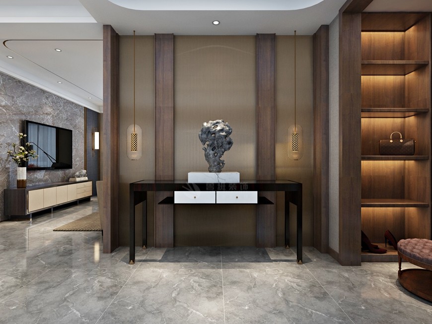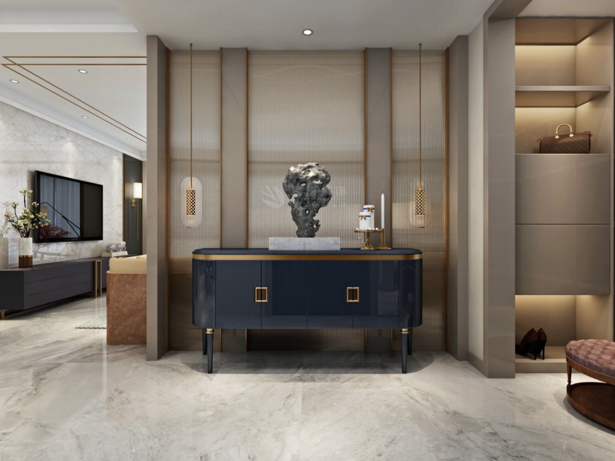 ▲西安(ān)魯班裝(zhuāng)飾出品湖(hú)城大境八号地天錦230平米現代簡約風馬超設計師主筆(bǐ)設計方案三——玄關設計效果圖
