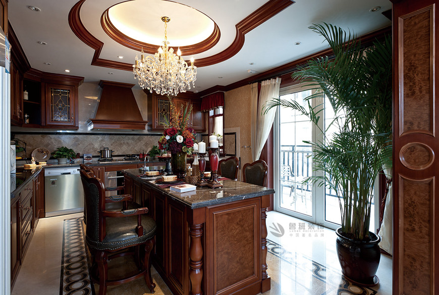 ▲中(zhōng)海東郡聯排别墅古典歐式360平米李建明主筆(bǐ)設計——廚房設計實景拍攝