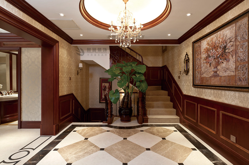▲中(zhōng)海東郡聯排别墅古典歐式360平米李建明主筆(bǐ)設計——玄關設計實景拍攝