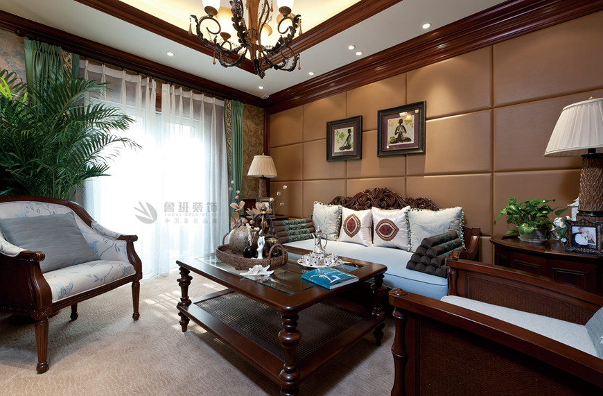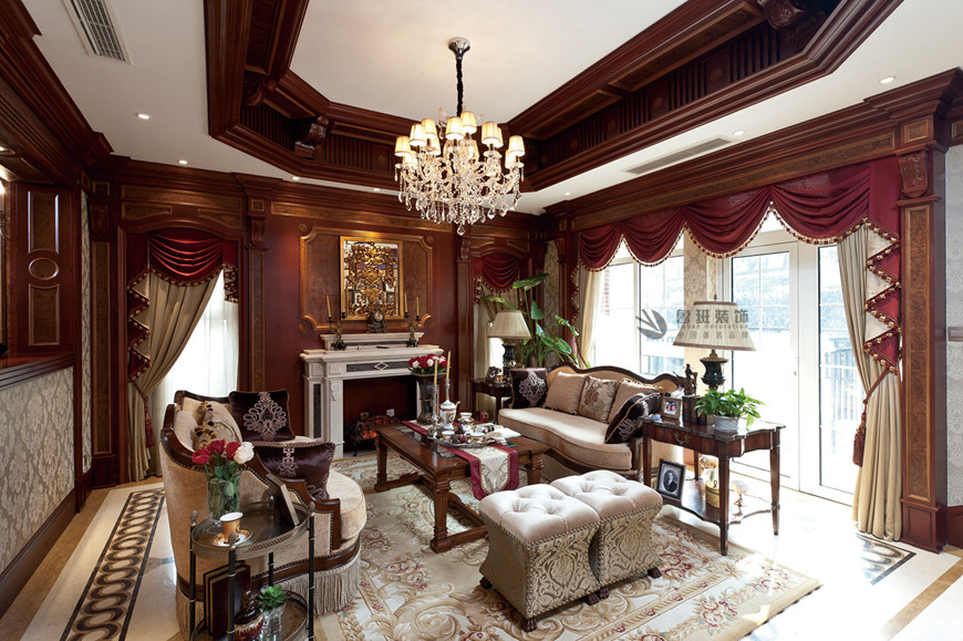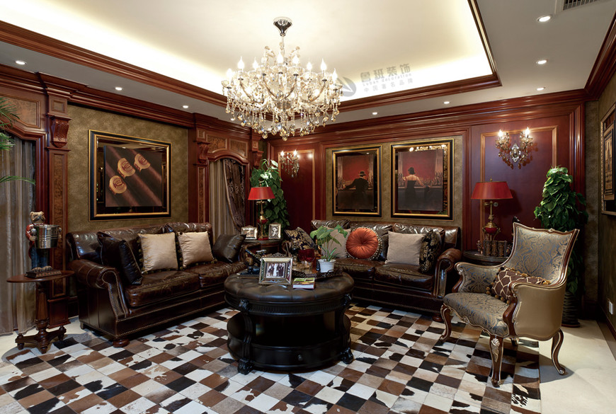 ▲中(zhōng)海東郡聯排别墅古典歐式360平米李建明主筆(bǐ)設計——起居室實景拍攝
