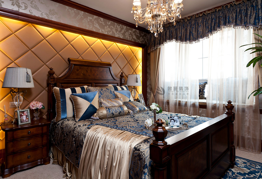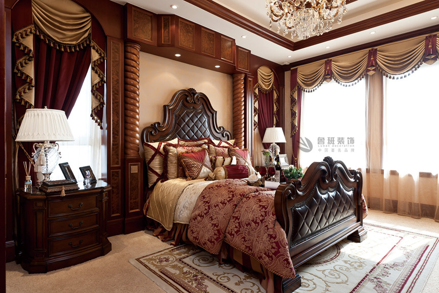▲中(zhōng)海東郡聯排别墅古典歐式360平米李建明主筆(bǐ)設計——卧室實景拍攝